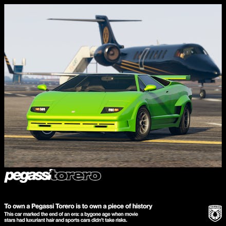 Need a sweet new ride in GTA Online? Don’t settle for something boring when the Pegassi Torero is available now. This gorgeous ‘80s-centric sports car is available in-game at Legendary Motorsport to remind you how hard everything in that bygone era rocked — and it’s gonna do it loud and in bright, screaming neon.