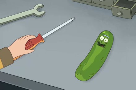 Rick and Morty brings this dynamic to the fore in the best episode of the season thus far, “Pickle Rick.” Beth is taking Morty and his older sister, Summer (Spencer Grammer), to family therapy — Jerry’s not invited to come along — and she wants Rick to join them. But Rick, knowing about the appointment a week beforehand, turns himself into an actual pickle to avoid going to therapy, claiming it’s another of his scientific experiments. There’s an “anti-pickle” syringe that’ll change him back to a human, but Beth gets a hold of the syringe and takes it to therapy, leaving Rick in his pickle form for much of the episode.