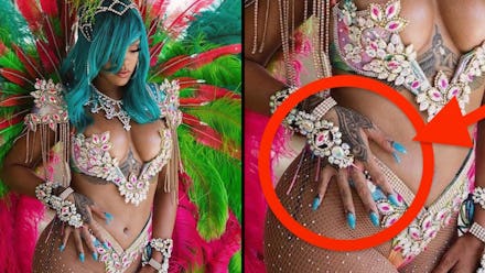 And that’s what led to this theory that Rihanna or someone on her team messed with this image somehow. (Because obviously, if Rihanna had three thumbs, we’d know by now.)