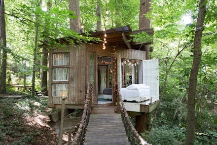 Just one look at the dreamily lit tree house would make anyone want to fly to Atlanta immediately. The accommodation has a suite of three furnished rooms among the trees: a sitting room, a bedroom and a hammock deck. And despite the seclusion, these rooms are just a couple of minutes from downtown Atlanta. Two people can stay in this forest retreat. Rates start at $375 per night.