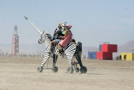 But in the very early years of Burning Man, disruption of masculinity was a definite part of radical self expression: Men regularly dressed in drag, they wore make-up, dresses, wigs and heels; the infamous Sisters of Perpetual Indulgence even showed up. Women also wore ambitious costumes, but usually in keeping with a more typical expression of gender: feathers on their heads, beaded dresses, homemade, skimpy costumes that looked ready for Carnival. Nudity also became a thing: Men and women were free to express themselves with no clothes at all, if that’s what they wanted — though, of course, female public nudity often has a different resonance both for communities and for women themselves.