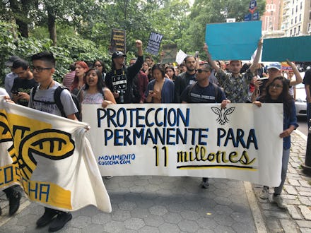 After rallying in front of Trump’s hotel, protesters marched up Manhattan’s posh Upper West Side neighborhood chanting “Undocumented and Unafraid” and “Sin DACA, sin Miedo” (without DACA, without fear).