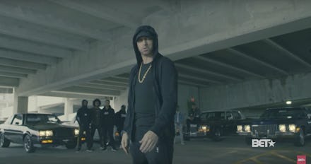 At the 2017 BET Awards, Slim Shady laid down an icy freestyle in which he rejected any fans of his who support Trump: “Any fan of mine who’s a supporter of his [Trump’s]/ I’m drawing in the sand a line, you’re either for or against/ And if you can’t decide who you like more and you’re split/ On who you should stand beside, I’ll do it for you with this: Fuck you.” The rap earned Eminem plenty of headlines — and if nothing else, he can now count Keith Olbermann as a fan.