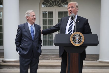 Trump made the comments while appearing alongside Senate Majority Leader Mitch McConnell (R-Ky.). The press conference came after Trump and McConnell ate lunch in a show of unity following reports they loathe each other.