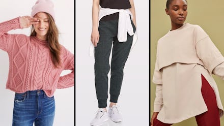 Uniqlo’s a good place to start, with fleece and tailored sweatpants that don’t make you look like you’re wearing pajamas. They’re also less than $30. Uniqlo’s got a pair of totally business-appropriate elastic-waist pants too now on sale for less than $30.