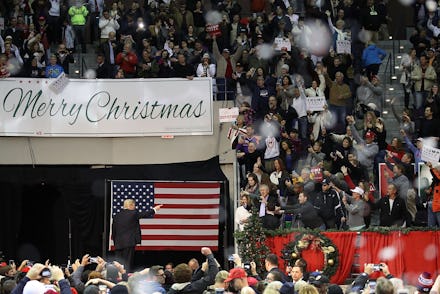 Trump also continued to politicize the holidays at the rally Friday, opening the rally by pointedly wishing his supporters a “very Merry Christmas” and promising tax cuts as a “Christmas present for the American people.”
