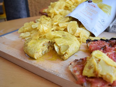 Adding potato chips to eggs is the ultimate hack for making a Spanish tortilla