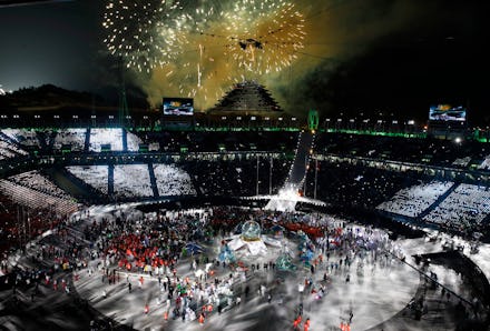 The closing ceremony largely focused on South Korea’s feat of hosting the 2018 Winter Games. The first round of fireworks cracked through the sky, then announcers swiftly pointed out South Korean President Moon Jae-in — who stood inches away from Ivanka Trump — in the glossy box overlooking Pyeongchang Olympic Stadium. The crowd cheered, then athletes trickled onto the stage in uneven clusters and in no particular order. No one announced who they were individually, and many of them didn’t even take their nation’s flag with them.
