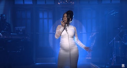 On Saturday evening, Cardi B stepped onto the Saturday Night Live stage to sing her second song of the night — “Be Careful,” from her new hit album Invasion of Privacy — in a long-sleeved, ruched white gown.