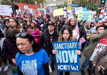 The city formally opposed the measure and agreed to sign on to the Trump administration’s lawsuit Tuesday with a 5-0 vote after a contentious debate from constituents. The Los Angeles Times reported that 200 people lined up to speak about the proposal, while outside the city chambers, 150 demonstrators and counterdemonstrators gathered. Those opposed to the resolution chanted “No hate, no fear, immigrants are welcome here,” and other pro-immigration slogans, while supporters of the measure, donning “We [heart] ICE” pins, sang the national anthem and told immigration supporters, “Speak English, you’re in the United States.”