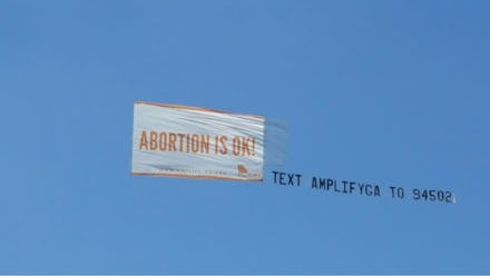 This spring, Amplify Georgia had a problem. The first company that the non-profit had contacted to fly its banner over the Atlanta Jazz Festival refused service. They were left scrambling, but that didn’t stop the organization from finding another willing pilot — and so, on two separate occasions, for four hours at a time circling above the festival on May 26 and 27, their banner flew. It read: “Abortion is OK!”