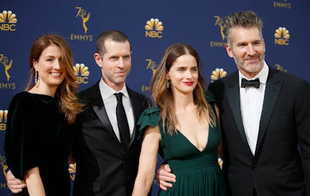 Co-creators and showrunners David Benioff and D.B. Weiss stood at the front of the stage to thank the cast and crew of the show, flanked on one side by author George R.R. Martin, who writes the book series that inspired the show.