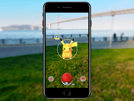 From here, the app will ask you to confirm that you’re using the AR function in a safe location and require you to slowly look around a flat, open area with your device’s camera. Once you do, tapping on grass around you will reveal a Pokémon. Approaching it too fast will result in it fleeing away. The exclamation points above the Pokémon’s head will determine how close it is to running away: yellow means approach more cautiously, red is a more severe warning to back off a bit. Catching a Pokémon without raising any flags will net you bonuses.