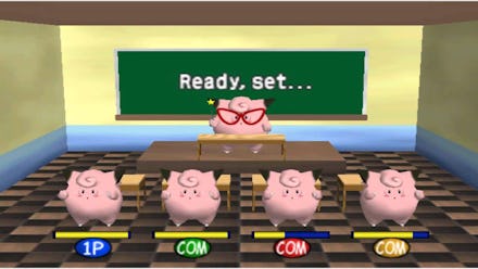 As either Pikachu or Voltorb, players have to charge up a machine with electricity by pressing the button on the Nintendo 64 controller that matches the colored light on the machine. Whoever fills up the machine first wins. If you’re a fan of watching Pikachu totally demolish its enemies in the anime, this is a good analogue for doing that, but it’s a great game to play regardless of your anime knowledge.