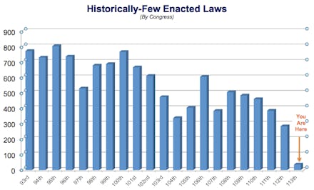 1 - That Congress is shying away from big government. By NOT passing any bills, Congress is not creating more complex bureaucratic red tape, thus allowing more economic and social freedom in America. This is the current Republican attitude, and one that was voiced by Speaker of the House John Boehner (R-Ohio), when he said in July that we should judge Congress by how many laws it repeals, not passes.