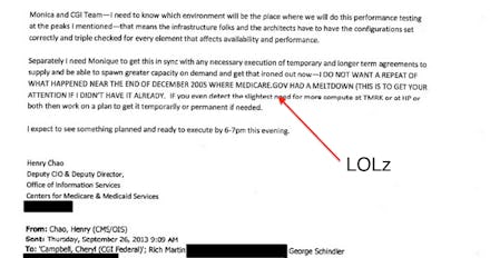 Unfortunately, Chao's use of all-caps failed to solve the site's issues, though his strong words did have a certain Cassandra-like quality. In its first day, Healthcare.gov received, "five times more users than had ever been on the Medicare.gov site at one time," according to the Chicago Tribune.
