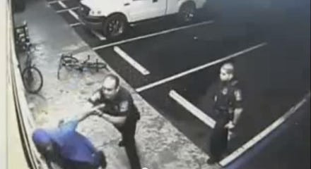 Saleh installed four security cameras just to document the cops’ outrageous harassment. The resulting videos capture Sampson being arrested while taking out the store’s trash, and again while restocking a cooler. Police can also be seen rifling through the store’s backroom without permission, and handcuffing, and taking away a customer.