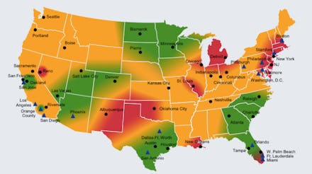 Meanwhile, Detroit, Reno, and southern Florida have yet to recover from their outsize role in the mortgage crisis. While housing prices and mortgage rates are down, home sales remain sluggish, leaving those locales with a slew of vacant buildings. And while the Northeast has fared better overall since the 2008 crash, its financial sector is expected to slow in 2014 as the Federal Reserve ends quantitative easing.