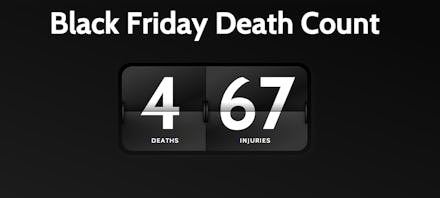 And what better way to celebrate that consumerism than with a running total of the death toll resulting from the frenzy of Black Friday?