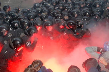 The protests have been ongoing, but things turned violent on Sunday when riot police fired flash grenades, tear gas, and truncheons on a crowd of demonstrators surrounding the president's office. The protesters were attempting to break through police lines by throwing rocks, as well as other objects. Dozens were injured in the clashes.