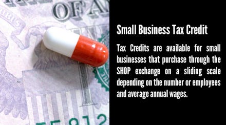 With SHOP, small businesses will be eligible in 2014 for tax credits up to 50% of premium contributions. Currently, businesses with fewer than 25 full-time employees can get tax credits of up to 35% of their contributions.