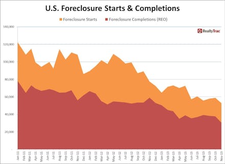 The background: Between greater scrutiny by banks and rising interest rates, home sales have been sluggish for much of the year, and homelessness in some areas of the country is on the rise. However, part of the sluggishness is the result of the drop in distressed sales cited by RealtyTrac's report. The change is likely the result of cautious loan practices and a drop in predatory lending, as well as gains in the job and financial markets that have made it easier for people to pay off their mortgages.