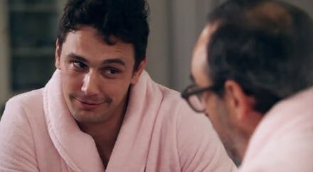 The video is probably the most surreal thing you'll see on the internet for awhile. In the video, Gary Shteyngart has written a new memoir which his publishers (Rashida Jones and David Ebershoff) decide to title, after extensive focus group testing, Little Failure. When he goes to his husband (James Franco) for support, he learns that Franco is about to release his own memoir, 50 Shades of Gary: An Erotic Journey.