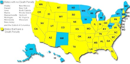 It's currently legal in 32 states (illegal in Washington, D.C.). In May, Maryland became the 18th state to abolish it. However, the repeal was not retroactive, leaving five people in the state on death row.