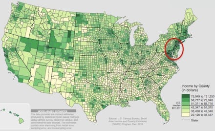 The Atlantic Cities did some digging and found that this is, by far, the richest area of the United States: the northeast corridor stretching from Boston to Washington, D.C: