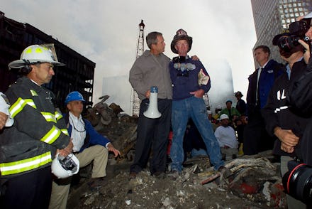 On Sept. 14, 2001, then-President George W. Bush visited Ground Zero and delivered a rousing speech to a crowd of emergency rescue workers. "I can hear you, the rest of the world hears you, and the people who knocked these buildings down will hear all of us soon." The audience erupted into energetic chanting: "USA! USA! USA!" and "God Bless America!"