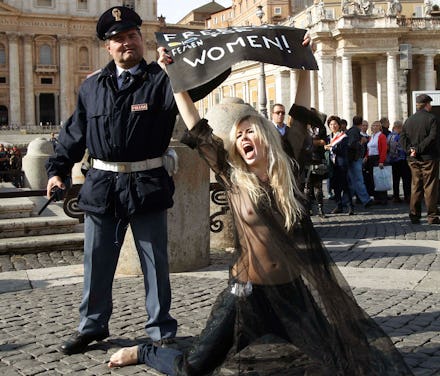 Exactly what the activists will be taking a stand against is unclear: sources say the target won't be announced until the night itself. But if Femen's most recent action at the Vatican is anything to go by, their demands might be that the world quit "middle age [sic] religious ideas." This is a group that can hardly be accused of a lack of ambition.