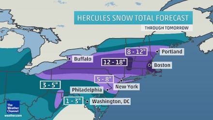 Winter Storm Hercules: Snowfall Forecast Could Be 8” in NYC, 18” in Boston