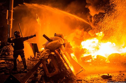 Photojournalist Ilya Varlamov has been documenting the protests from behind the opposition lines, walking among the protesters and taking stunning photos of their struggle. Here's some photos he took of street fighting in Kiev.