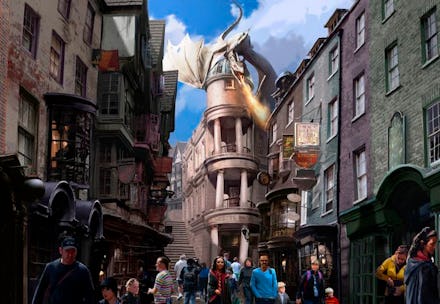 Need to withdraw some Galleons before you start shopping? Just step into Gringotts Wizarding Bank to do business with the goblin bankers, or to explore its perilous vaults. The bank will feature a new ride called "Harry Potter and the Escape From Gringotts" — watch out for unfriendly dragons!