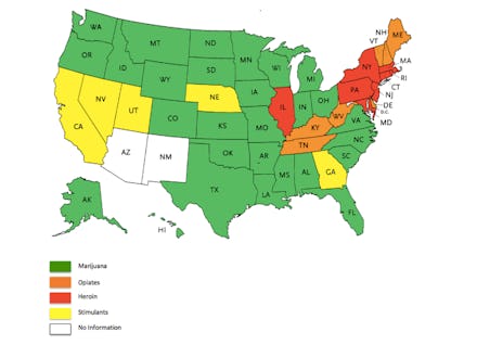 - Pennsylvania: Heroin is the most commonly cited drug among primary drug treatment admissions in the state, followed by marijuana.