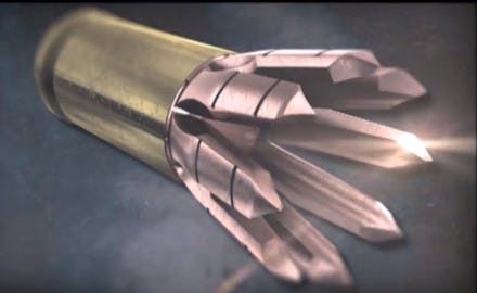 The news: Not satisfied with the destructive power of hollow-point bullets or large-caliber guns? G2 Research has you covered with the new "Radically Invasive Projectile" (R.I.P., clever) an exploding bullet they say can "take the civilian and law enforcement markets by storm, and truly become the last round you’ll ever need."
