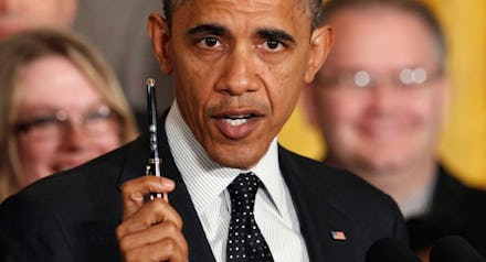 In Obama’s mind, challenges to the law are self-refuting if made more than once. “Let’s not have another forty-something votes to repeal a law that’s already helping millions of Americans like Amanda [audience prop]. The first forty were plenty. We got it,” he said.