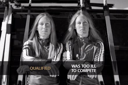 Over a black and white photo, the ad tells the story of Tracy and Lanny Barnes, biathlete twins who trained to compete in Sochi games, the last Winter Olympics for which they'd be eligible. When Lanny fell too ill to compete and was elimnated in the tryouts, Tracy, who made the cut, selflessly sacrificed her spot so her sister could compete. It's a beautiful and inspiring ad that you should watch for yourself.