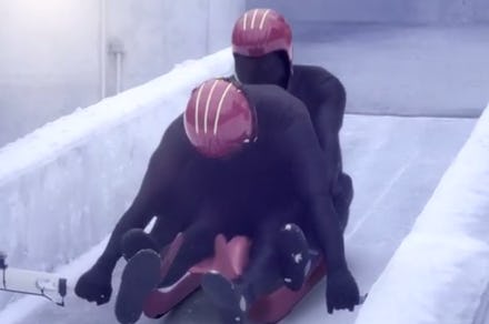 That's two men "luging," if you must know. And yes, it's probably what you think it is.
