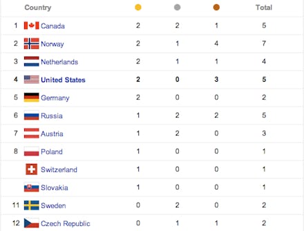 Sochi 2014 Medal Count — Updates Through Monday