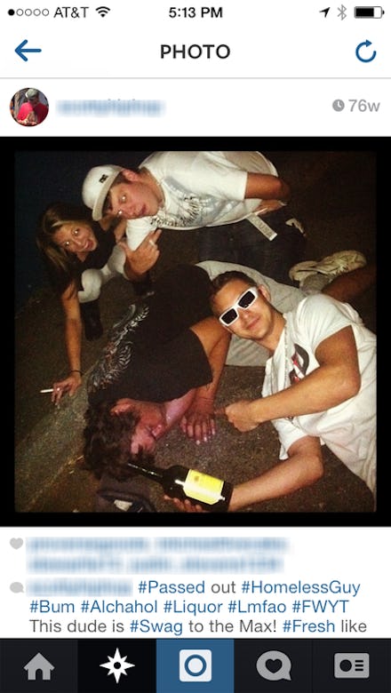 Oh, and in case you needed a hint, don't take a selfie with a homeless person. On a scale of one to "everyone that sees this will lose respect for you permanently," this is a Rob Ford crack video levels of awfulness. And it's very, very sad.