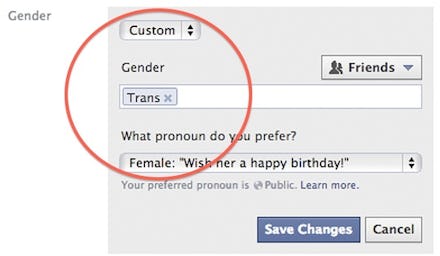 The update has already rolled out for each of Facebook's 159 million monthly users and is targeted at those who felt alienated by the company's restrictive prior policy. Previously, a user could only select male, female, or a "hidden" neutral option — not exactly welcoming. Androgynous, bi-gender, intersex, gender fluid, or transsexual users will now be able to select a gender identity for their profile that makes sense to them.