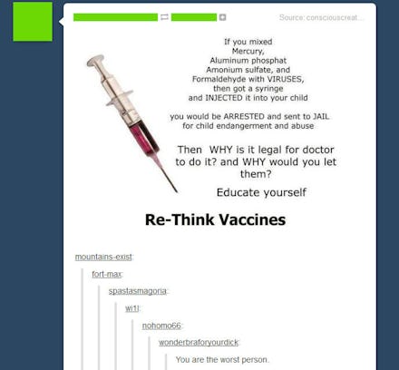 Recently, this anti-vaccination image was posted on the popular microblogging site Tumblr: