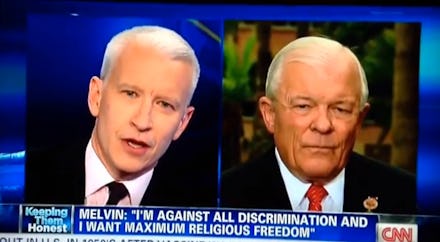 “Sir, you’re running for governor of the state of Arizona, you’re going to be governor of gay and lesbian people,” Cooper replies, “and you can’t even go on the record and say if a gay [or] lesbian person is fired simply for being gay or lesbian, that’s discrimination?” But the Senator sticks to his guns, even when Cooper gives him “one more opportunity” to answer: “I’m against all discrimination and I want maximum religious freedom, sir,” says Melvin.