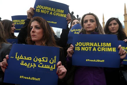 On Thursday, people around the world joined in real and virtual protests condemning Egypt's detention of domestic and foreign journalists. While most notably four Al Jazeera journalists remain in prison, a handful of others are in trouble too. The Egyptian government has thrown heavy charges at the nine total journalists who are among 20 people being held behind bars. They are being tried for engaging in terrorism and "harming national unity and social peace."