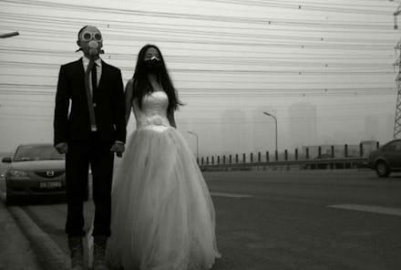 People in China cannot breathe, and they are getting tired of trying to mask it. One newlywed couple, in an act of protest, took their wedding portraits outdoors.