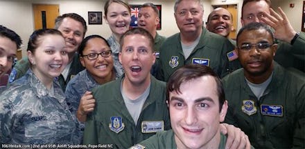 The Raleigh-Durham triangle in North Carolina is a major center for the U.S. military, so WTKK/WPTI radio show host KC O'Dea had an idea: "If one of the bases in the area recreates Ellen's picture, I'll post it on Twitter and try and get it retweeted more times than Ellen's." And very quickly, that noble proclamation gave us this masterpiece from some servicemen and women over at Pope Airfield:
