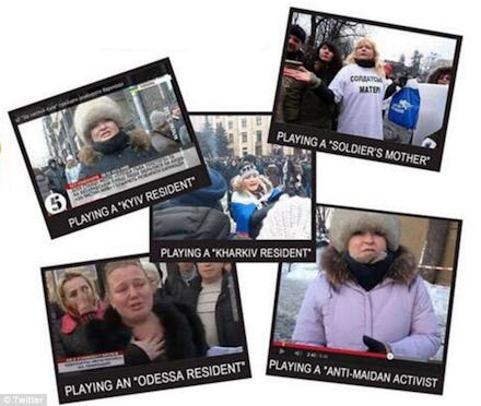 In what might possibly be the strangest thing to come out of the ongoing Russian-Ukrainian, Russian television has been accused of hiring an actress to spread pro-Russian propaganda.