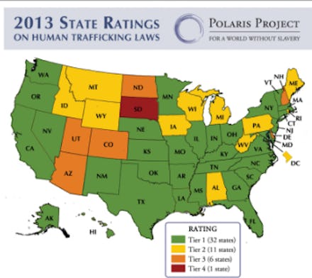 The good news is that many states have made significant progress in recent years when it comes to getting anti-human trafficking legislation on the books. Polaris Project, one of the world's most prominent organizations in the fight against human trafficking, conducts an annual study to assess states on their human trafficking legislation. The study groups states into four tiers based on criteria that includes sex trafficking provisions, labor trafficking provisions, support for victims and laws protecting trafficked minors from prosecution when they’ve been forced or manipulated into illegal activities like prostitution.