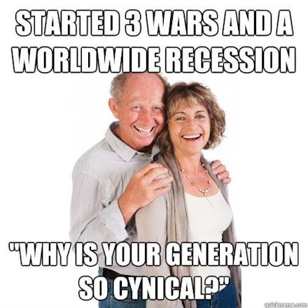 On war, this Scumbag Baby Boomer is a little off. While most people, young and old, supported the wars in Iraq and Afghanistan in the early 2000s and reject them now, it was actually Millennials who supported the conflicts longer.